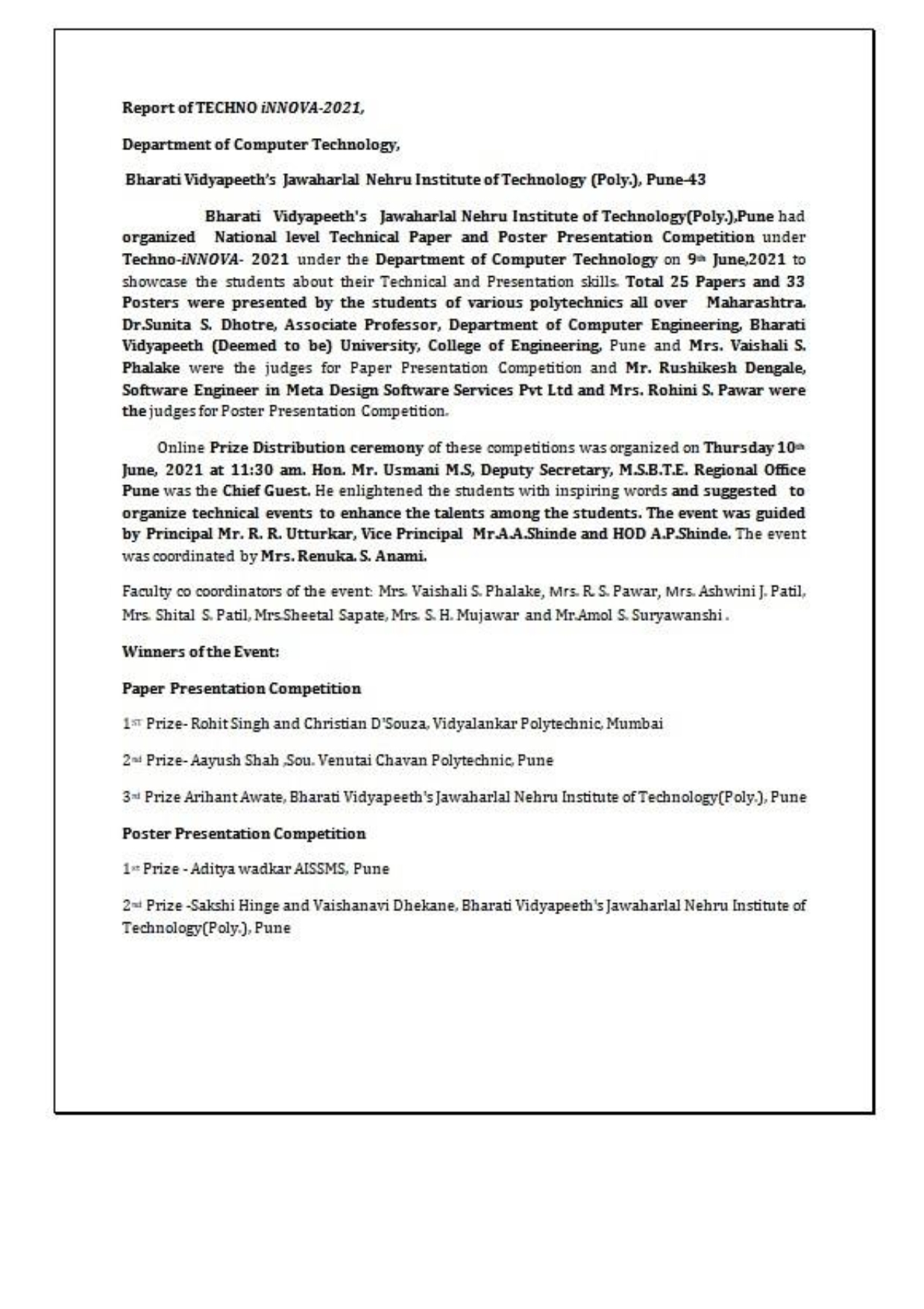 The Institute is affiliated to Maharashtra State Board of Technical Education (MSBTE), Mumbai.